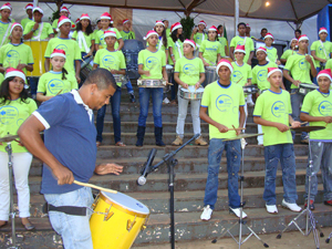 De acordo com a Secretária, o objetivo da Mostra é mostrar para a comunidade os trabalhos desenvolvidos pelos programas PETI e Pró Jovem Adolescente. “A Promoção Social desenvolve projetos de grande abrangência que procuram contribuir para a formação social e educacional de crianças e adolescentes de nossa Cidade”. Durante o evento, os visitantes puderam conhecer os trabalhos artesanais feitos por alunos dos Projetos e também assistir a várias apresentações culturais como o Grupo de Percussão Mãos no Tambor; a Cantata de Natal, com o coral do PETI; músicas e danças, feitas pelos alunos do Pró Jovem Adolescente; além de depoimentos de participantes e professores. Para o aluno Ademilson Souza Neves, do grupo Mãos no Tambor, as aulas de música são de grande importância para ele. “Sempre gostei muito de música e o mais importante é que estas aulas tiram a gente das ruas e nos fazem aprender mais coisas. Quem sabe com estas aulas eu possa ganhar uma boa oportunidade de trabalho no futuro”. Giovana Silva, que assistia as apresentações, conta que se emocionou várias vezes. “Senti muita emoção nas apresentações de teatro e nos depoimentos. Mais eventos como este poderiam acontecer aqui em Rio Verde”. Clarice Martins destacou ainda o compromisso de governo de Juraci Martins. “Sabemos do compromisso deste governo em criar melhores condições de vida a uma grande parcela da comunidade rio-verdense, tendo os olhos voltados às crianças e adolescentes”. Fotos: Washington Oliveira