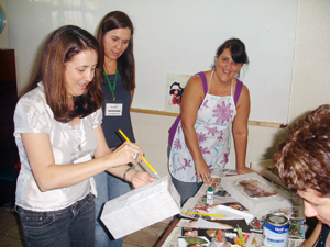 Caixas de sapato são enfeitadas pelas alunas e admiradas pelas funcionárias da Promoção Social