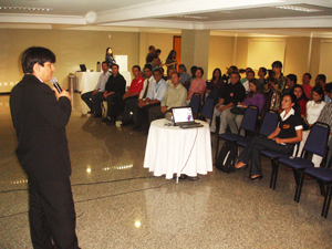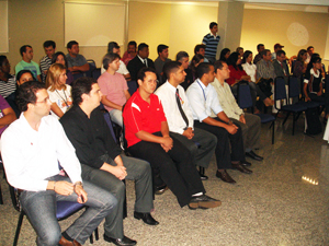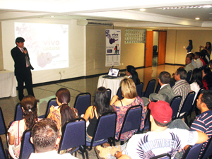 Aconteceu hoje,11, no "Gelps Hotel "em Rio Verde, um café da manha de lançamento do concurso “Vivo Cantando”. Essa Promoção foi lançada com o objetivo de buscar novos talentos da música sertaneja no estado de Goiás. No evento, representantes da Prefeitura de Rio Verde, como o Presidente da Fundação Municipal de Cultura João Orlando Cruvinel, e demais servidores da Secretaria de Comunicação e Secretaria de Educação, puderam acompanhar as explicações do Gerente da Vivo em Goiás Guilherme Queiros, que apresentou o regulamento do concurso e demais informações. Segundo os organizadores, o concurso percorrerá 25 cidades do estado de Goiás, uma delas Rio Verde, entre os dias 14 de setembro a 31 de outubro, em busca de novos talentos da música sertaneja. A Campanha foi aberta para cantores solistas e duplas, e as inscrições podem ser feitas nas lojas participantes do projeto. Em Rio Verde os pontos para realização das inscrições são: 1- Loja Novo Mundo, à Av. Presidente Vargas, 649 – Centro 2 – Loja Própria da Vivo, Rua Coronel Vaiano, 654 – Centro 3 – RCR Telecomunicações, à Av. Presidente Vargas, 1740, Quiosq 10, Jardim Goiás Os interessados devem apresentar um CD com duas músicas cantadas, sendo uma composição inédita e outra já conhecida – um cover de outro artista. Ele também deverá preencher a ficha de inscrição e entregar a letra das canções. O prazo para realização da inscrição varia de acordo com a cidade escolhida pelo candidato. Todo material recebido será analisado pelo produtor musical do projeto, o goiano Ton Faria. Ele irá selecionar até 10 cantores ou duplas, que irão se apresentar em cada seletiva. Ton, é músico saxofonista, foi um dos fundadores da Banda Mr. GYN e já participou como produtor de outros festivais, como o Festival Vitrine, direcionado aos funcionários de Furnas S/A e o Festival Sertanejo da Pecuária de Pontalina. O “Vivo Cantando” traz cinco etapas seletivas, sendo elas nas cidades de Anápolis, Itumbiara, Catalão, Rio Verde, Aparecida de Goiânia e grande final na capital goiana. Os Shows serão realizados em uma carreta palco, que também irá percorrer outras cidades para incentivar as inscrições. Na véspera da seletiva, os candidatos poderão checar os selecionados nos pontos de inscrição ou pelo site www.vivocantando.com.br. Um júri formado pelo produtor musical do projeto, por representante da Vivo, do governo municipal de cada cidade, além de um jornalista e um radialista escolherá as cinco melhores duplas ou cantores. No entanto, o público é quem decidirá aqueles que irão disputar a final do “Vivo Cantando”, ao votar no seu candidato favorito por meio do site www.vivocantando.com.br ou pelo envio gratuito de SMS para o número 22240, caso seja cliente Vivo. Já os finalistas, serão avaliados apenas pelo júri e conhecerão o resultado logo após as apresentações. Os vencedores ganharão como premiação à gravação de DVD semiprofissional, além de motos e TVs LCD . Segundo o Diretor territorial da Vivo no Centro-Oeste, Marcio Rattes, a idéia é conectar os novos talentos da música sertaneja a um público maior no estado, levando gratuitamente cultura popular aos goianos e novas oportunidades de sucesso aos artistas. È por todas essas vantagens que a Prefeitura de Rio Verde apóia esse projeto, pois acredita nos grandes talentos de nossa cidade. As inscrições estão ai, faça já a sua e represente nosso município, como grandes sertanejos de nosso estado. Maiores Informações pelo site : www.vivocantando.com.br Fotos: Washington Oliveira