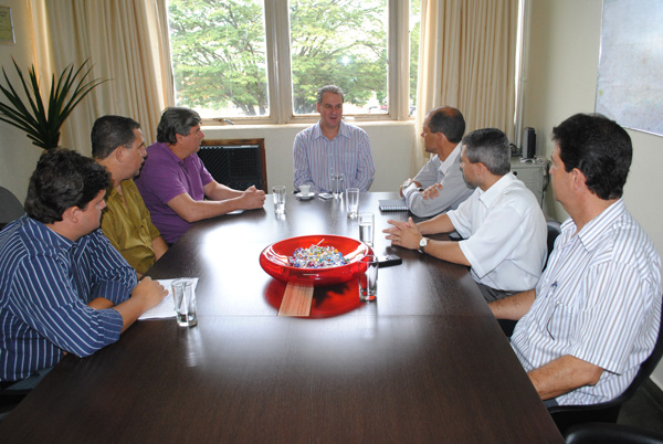 Na manhã desta quinta-feira, 3, a pedido do prefeito Juraci Martins foi realizada uma reunião com presidentes de entidades do comércio e indústrias de Rio Verde. Na ocasião estiveram presentes representantes da Associação Comercial e Industrial de Rio Verde (ACIRV), Câmara de Dirigentes Lojistas (CDL), Sindicato do Comércio Varejista (Sindivarejista), Sindicato dos Comerciantes Varejistas de Gêneros Alimentícios de Rio Verde (Sincogarv) e Sindicato das Indústrias Metalúrgicas, Mecânica e Material Elétrico do Sudoeste Goiano (Simesgo). Participaram da reunião os secretários Zeir Ascari (Fazenda), Cairo Fagundes (Comunicação) e o chefe de licitação João Mário Silva. O encontro serviu para reforçar o incentivo e a participação do comércio e empresas rio-verdenses nas licitações realizadas pelo poder público municipal e também para os secretários tirarem dúvidas dos convidados sobre o alvará de licença. O secretário da Fazenda Zeir Ascari aproveitou a oportunidade para dizer que é importante a aproximação destas entidades com a Prefeitura. “Estamos à disposição para esclarecer dúvidas”, afirmou Zeir. Na oportunidade João Mário ressaltou a importância dos esclarecimentos sobre o processo de licitação e salientou a importância do curso sobre licitações que está marcado para acontecer nos dias 15 e 16 de março tendo como público alvo empresas e comerciantes do município e empresas prestadoras de serviço. “O curso assim como a reunião foi um pedido do Dr. Juraci, e os comerciantes de Rio Verde só tem a ganhar, informação nunca é demais”, explicou João Mário. Fotos: Washington Oliveira Secretário Zeir Ascari reforça a vontade do poder municipal em prestigiar o comercio local Curso sobre licitações que está marcado para acontecer nos dias 15 e 16 de março