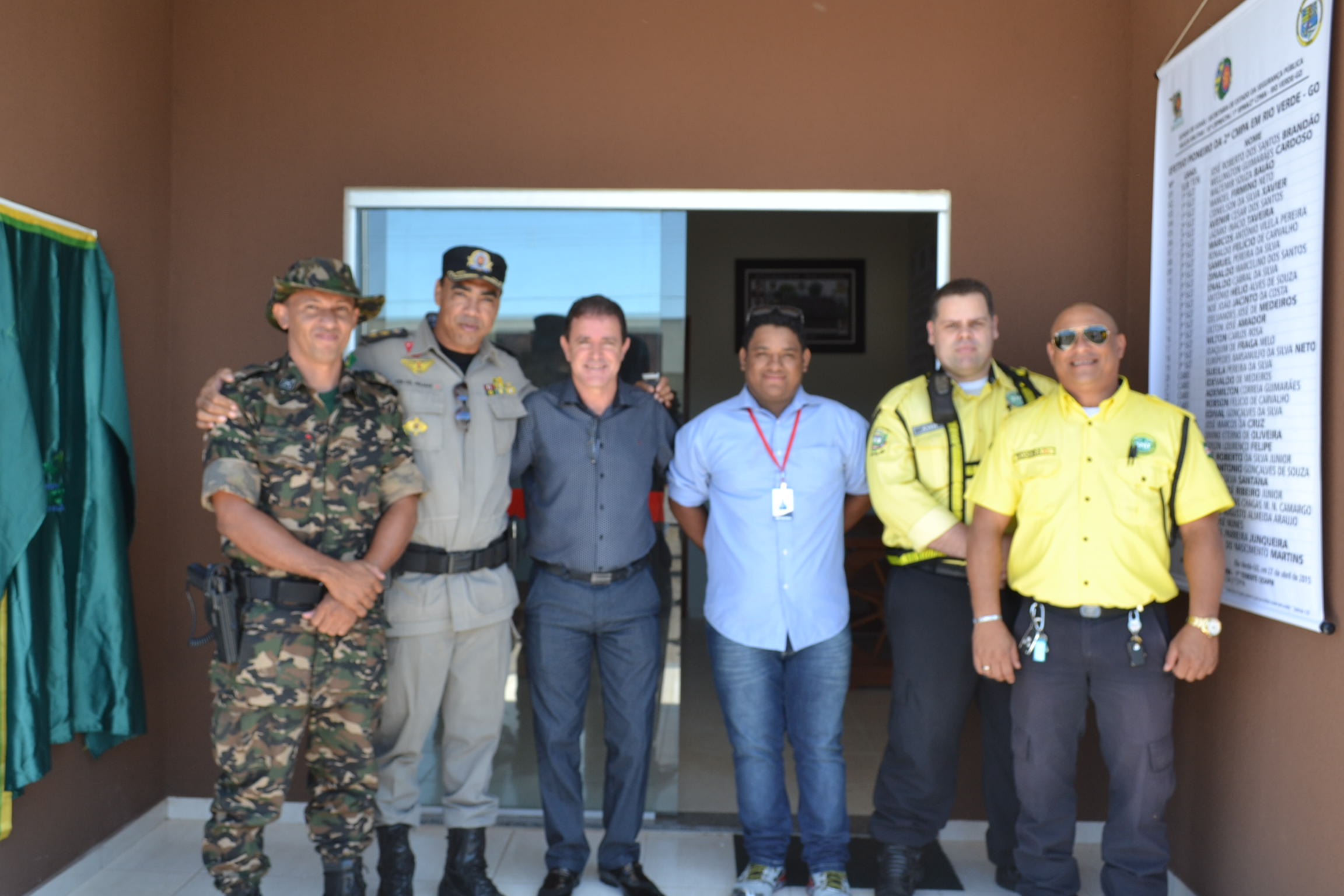 Na solenidade de inauguração, também esteve presente o secretário de Desenvolvimento Econômico Sustentável, Rubens Leão, na ocasião representando o prefeito Juraci Martins; o subintendente executivo do gabinete do prefeito, Soldado Fernando, no ato representando o deputado estadual, Lissauer Vieira; a vereadora Maria José, representando no ato o deputado federal, Heuler Cruvinel; representando a Câmara de vereadores, o vereador Iturival Nascimento; o comandante da 8ª CRPM, o tenente Coronel Clarimundo José dos Santos; o comandante do 16º CRPM Comando de Policiamento Ambiental, Avelar Lopes de Viveiros; o subcomandante geral da Polícia Militar de Goiás, Jurair Alves de Souza; o senhor Laudimar Inácio Taveira e o delegado regional Danilo Fabiano Carvalho e demais autoridades.