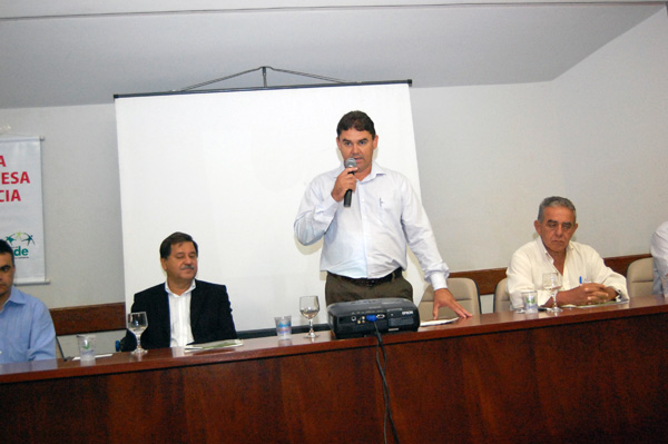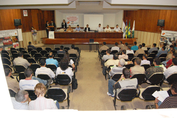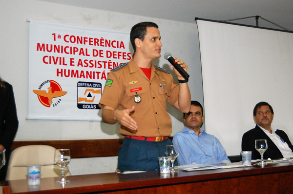 A Prefeitura de Rio Verde em parceria com o 4º Batalhão de Bombeiros Militar de Rio Verde realizou na manhã desta sexta-feira, 29, a 1ª Conferência Municipal de Defesa Civil e Assistência Humanitária. O evento contou com a presença do Prefeito Juraci Martins, Deputado Padre Ferreira, o Presidente da Comissão Organizadora da Conferência José Antônio Pereira, o Subcomandante do 4ºBBM – Rio Verde Capitão Michelsen Faria, o Comandante do Colégio da Policia Militar Major Daniel Pereira e o Presidente do Conselho de Segurança Manoel Divino. O evento foi iniciado ao som do Hino Nacional sendo seguido da leitura do Decreto Municipal que instituiu a 1ª CMDC, tendo como objetivo de realizar avaliações quanto às ações da defesa civil no município em cumprimento do Decreto Presidencial introduzido em nossa legislação. “Devemos nos organizar para que juntos possamos reconstruir nossa cidade”; diz o Prefeito Juraci Martins. “É Importante que nos mobilizemos, para que possamos estar preparados para qualquer problema e eventualidade que aconteça”; afirma Capitão Michelsen Faria. Em razão das recentes mudanças ambientais que estão ocorrendo por todo o país às comunidades sociais tendem a se organizar para se precaver dos eventuais cataclismos que a sociedade posso a vir passar. Dessa maneira a instituição de ações e métodos que possam orientar a população refletindo a função primordial da 1ª CMDC. Fotos: Cairo Fagundes Mesa diretiva dos trabalhos saudando o pavilhão nacional Auditório do Senai "Devemos nos organizar para que juntos possamos reconstruir nossa cidade"; diz Juraci Martins José Antônio Pacheco Presidente da 1ª CMDC Capitão Faria Sub-Comandante do 4º BBM-Rio Verde