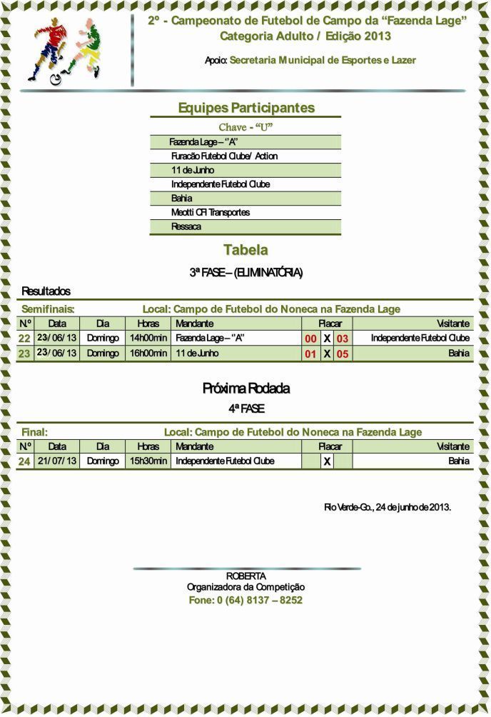 Resultado: Campeonato de Futebol de Campo da “Fazenda Lage”