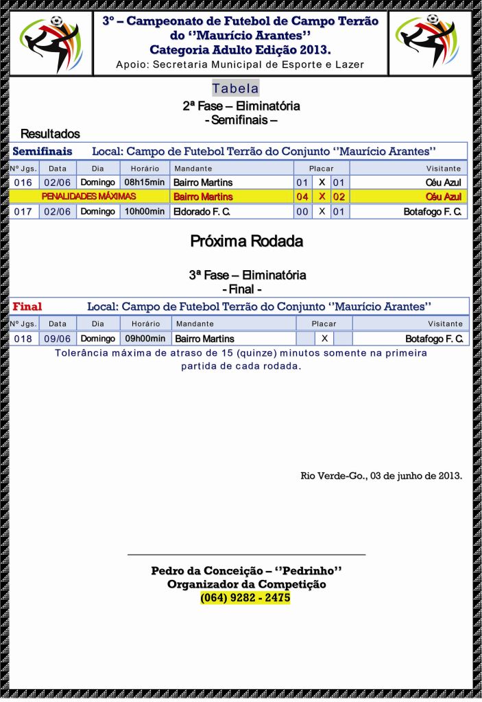 Resultado: Campeonato de Futebol de Campo Terrão do “Maurício Arantes”
