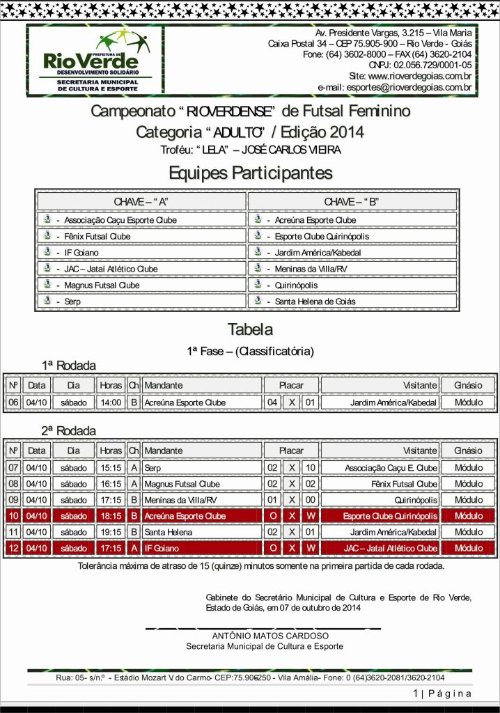 Resultado: Campeonato Rio-verdense de Futsal Feminino – Categoria Adulto