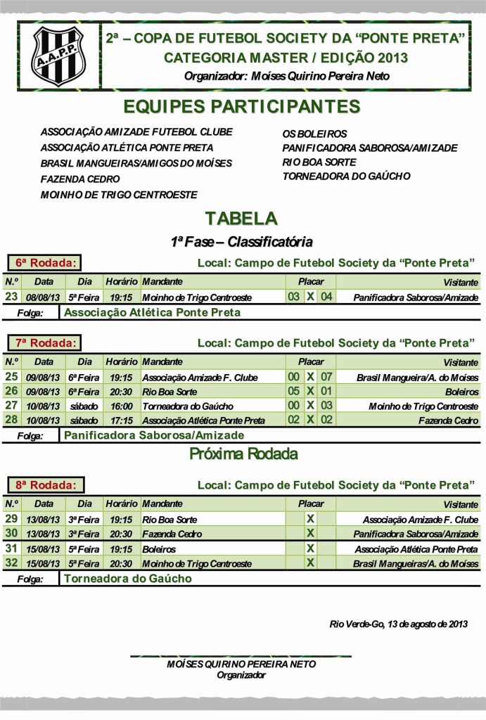 Resultado: Copa de Futebol Society da “Ponte Preta” Categoria Master