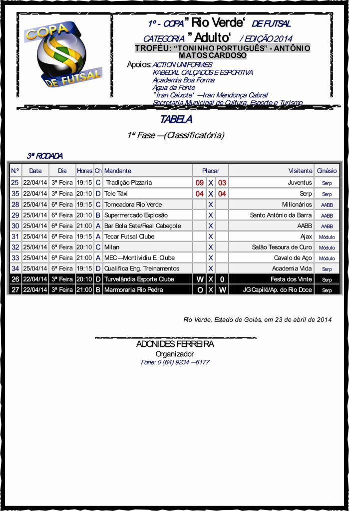 Resultado: Copa Rio Verde de Futsal – Categoria Adulto