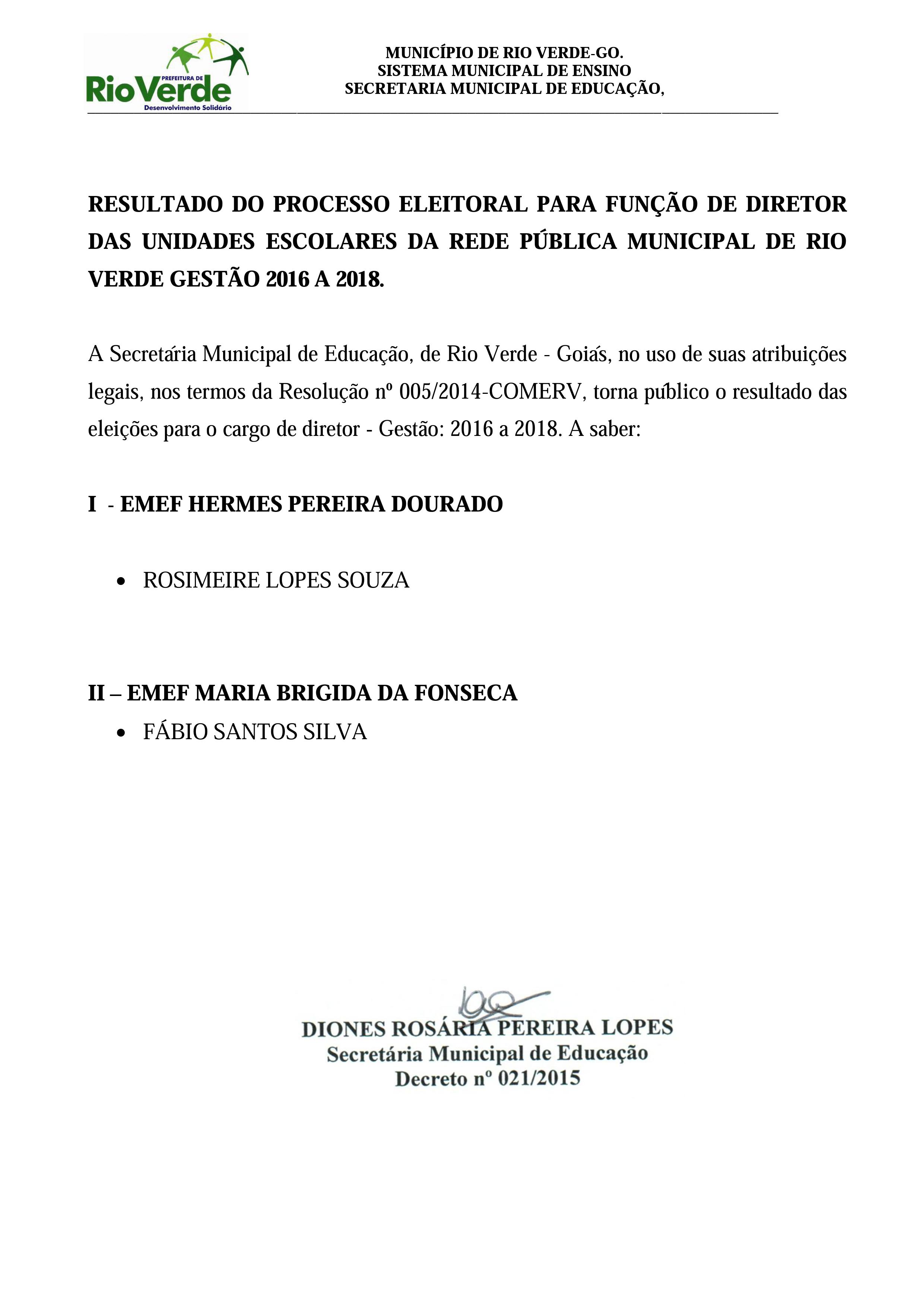 Resultado das eleições para gestores 2016/2018