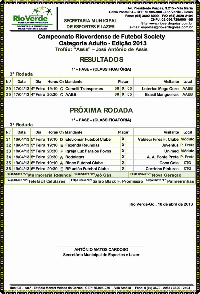 Resultados: Campeonato Rio-verdense de Futebol Society – Categoria Adulto