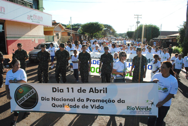 Logo cedo nesta segunda, dia 11, várias pessoas, entre profissionais de saúde, estudantes, soldados do Tiro de Guerra, demais integrantes da comunidade rio-verdense e até os idosos da Academia da Terceira Idade (ATI) se reuniram em frente à construção da Unidade de Pronto Atendimento (UPA) para participar da 2ª Caminhada do Dia Nacional da Promoção de Qualidade de Vida.