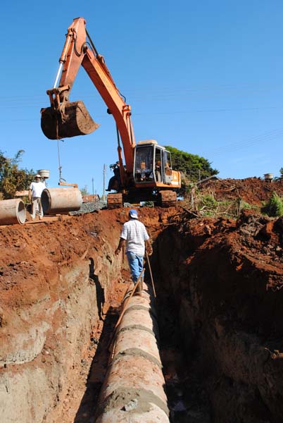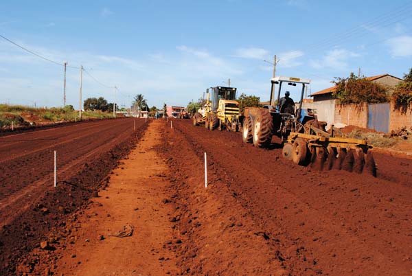 Rede Pluvial é construída no Bairro Liberdade – Com um grande canteiro de obras localizado na Rua Patativa, diversos trabalhadores e máquinas “rasgam” as imediações removendo toneladas de terra argilosa para concluir os trabalhos de rede coletora de águas pluviais. Com um valor de investimento de aproximadamente R$ 100 mil, a rede irá coletar as águas das chuvas e as direcionará, em segurança, para o leito de um pequeno córrego que circunda as imediações do setor. Um dos problemas enfrentados está por conta da grande intensidade de minas d’águas na região, problema causado devido à composição geológica do solo da localidade. Vale destacar que todas as medidas de segurança estão sendo tomadas para evitar problemas futuros referente à drenagem da rede. Asfalto do Dom Miguel continua em ritmo acelerado – A Avenida Cinco de agosto no Bairro Dom Miguel (ao lado do Residencial Monte Sião) recebeu recentemente um sistema integrado de águas pluviais que contemplam três grandes “braços” de tubulações, visando a garantir a captação eficiente das águas. A obra teve um custo de investimento de aproximadamente R$ 800 mil reais e chega a sua fase final, sendo iniciado o processo de pavimentação das duas pistas da Avenida. Diversas máquinas realizam a construção da base utilizando tratores, caminhões pipas, motoniveladoras e rolos compactadores, tendo por finalidade garantir a rapidez e qualidade da obra. Maria Helena, que mora de frente a Avenida, não esconde sua satisfação ao ver os trabalhos a todo o vapor. “Após muito sofrimento chegamos ao fim desse período difícil de nossas vidas, agora nossos imóveis serão mais valorizados e teremos uma qualidade de vida digna.” Na frente norte do Bairro Dom Miguel seguem os trabalhos de construção de base, já entrando em processo de finalização. Bairro Gameleira I em processo de pavimentação – Com mais de 100 mil m² de extensão, o Bairro Gameleira I vem recebendo gradativamente os trabalhos para a total pavimentação do bairro. Os operários responsáveis pela cobertura asfáltica estão concentrando os trabalhos na Rua do Angico, que ganha nova forma com cobertura. Para esta obra, estão sendo investidos cerca de R$ 7 milhões. Vale destacar que massa asfáltica passa por um rigoroso controle de qualidade, sendo aplicada com aproximadamente 111 graus de temperatura. Para se precaverem a eventuais falhas no projeto, os operários realizam uma medição metro a metro para garantir a espessura necessária da capa asfáltica. O secretário de Obras Luís Carlos Sabino, garante que todo o Bairro será asfaltado. “Temos todos os recursos necessários para a realização da obra, ou seja, 100% da pavimentação do Gameleira. Garantimos à população o asfalto em todas as ruas”, destacou o Secretário. Vila Mariana 2 receberá asfalto – Após vários anos convivendo com intensa poeira e lama, no período chuvoso, os moradores da Vila Mariana 2 têm um motivo para sorrir. Nos últimos dias começaram os trabalhos de abertura de ruas para iniciar o processo de pavimentação do Bairro. Com uma extensão de 16 mil m², o Bairro receberá um investimento total na ordem de R$ 850 mil reais que garantirá a construção de asfalto de boa qualidade juntamente com galerias pluviais, sarjetas e meio-fio. Diversas máquinas tomam conta das ruas realizando os trabalhos mais diversos, entre eles o de regularização de sub-leito e compactação de base asfáltica com cascalho nas Ruas B e C. Maria das Neves, moradora do Bairro, comenta sobre a grande felicidade em receber esse benefício. “O asfalto era um sonho de todos da região. Acreditamos que até mesmo nossa saúde irá melhorar, pois não teremos mais aquela poeira invadindo as casas,” disse. Fotos: Washington Oliveira Trabalho de compactação de base na Vila Mariana II Máquinas abrem as ruas para iniciar o processo de pavimentação Av. 5 de agosto no Bairro Dom Miguel seguem os trabalhos de construção de base Moradores da Avenida 5 de agosto se dizem felizes com os trabalhos de pavimentação Operários trabalham na construção da rede pluvial do Bairro Liberdade Sec. de Obras garante que 100% do Bairro Gameleira será asfaltado, em destaque Rua do Angico