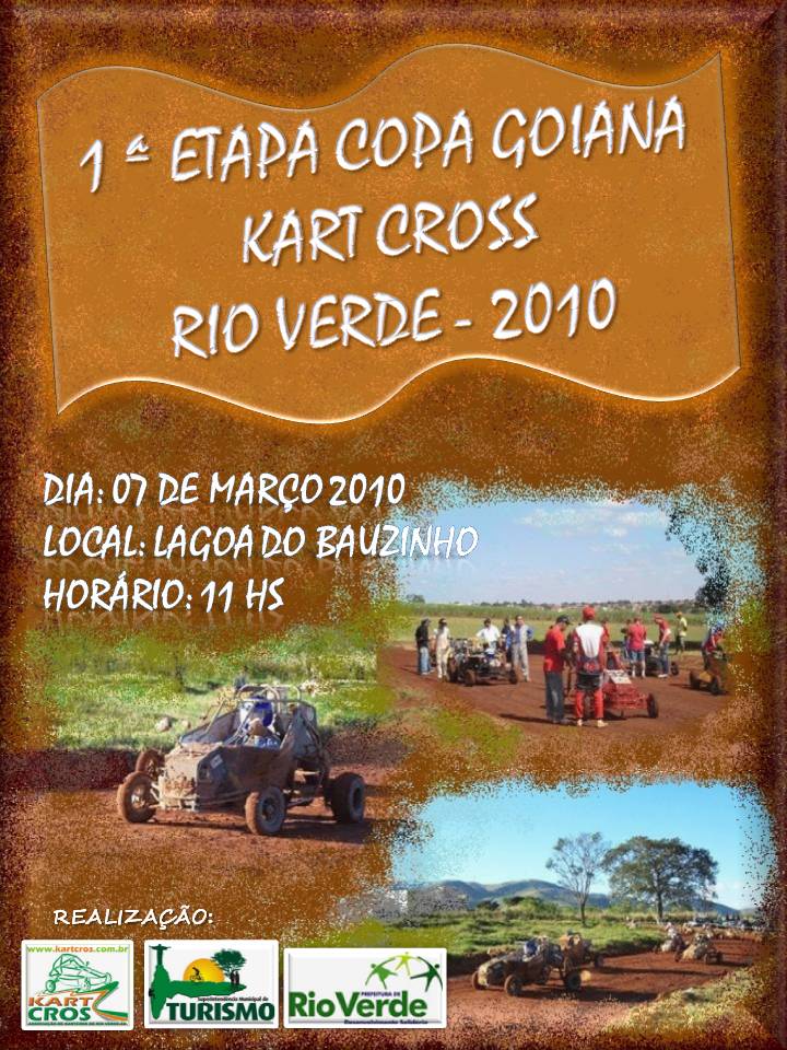 A Prefeitura de Rio Verde através da Secretaria Municipal de Turismo em parceria com a Associação de Kart-Cross de Rio Verde irá promover no próximo domingo, 07, a 1ª Etapa da Copa Goiana de Kart-Cross. O evento será realizado no Distrito de Lagoa do Bauzinho e contará com a participação de pilos de Rio Verde, Goiânia, Anápolis, Nerópolis, Acreúna e Goianésia .