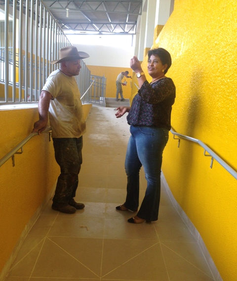 Prestes a finalizar as obras da EMEF Prof. Luiz Alberto Leão, a secretária de Educação Diones Lopes, visitou e conversou com alguns trabalhadores na tarde de hoje, 19.