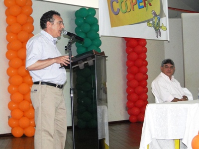 Fizeram parte da mesa diretiva o presidente do SESCOOP/GO Antonio Chavaglia, o Secretário Municipal de Educação Levy Rei de França, a Subsecretária Estadual de Educação de Rubiataba Vera Lúcia Borba e o presidente da Cooperativa de leite de Goiânia (Centroleite) Haroldo Max de Sousa. Em discurso, o Secretário ressaltou que promoveu reuniões com os conselhos escolares da rede municipal de ensino e, durante os encontros, percebeu a dificuldade de envolver os pais no processo educacional. “Neste encontro eu percebo a necessidade de ampliar o Programa Cooperjovem, quando vejo o princípio cooperativista sendo disseminado nas escolas. Fico muito feliz”, disse acrescentando ainda que a Secretaria Municipal de Educação se coloca à disposição para ajudar a promover o cooperativismo nas escolas. “O prefeito Juraci Martins tem nos dado total apoio na Secretaria de Educação e deixou claro que ele vê este Programa com bons olhos. Fotos: SME