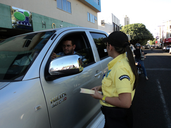 A equipe de Educação para o Trânsito da SMT transmitiu informações de respeito e responsabilidade dos condutores em relação à bebida e as consequências para o trânsito. A iniciativa visa garantir a segurança no trânsito para todos os cidadãos rio-verdenses. Segundo a coordenadora de educação para o trânsito da SMT, Edineth Gonçalves, esta é mais uma oportunidade da SMT mostrar o seu valor perante à sociedade rio-verdense.Fotos: SMT Agentes fizeram abordagens com os condutores para falar dos três anos da "Lei Seca" Na oportunidade foram distribuídos panfletos educativos