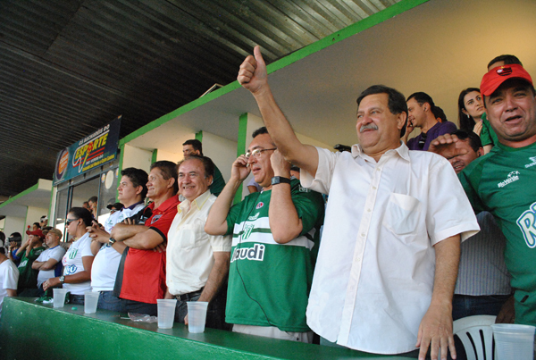 Rio Verde conquistou o título de campeão da segunda divisão do Goiano de futebol    Juraci Martins acompanhado por secretários municipais e pelo deputado federal Heuler Cruvinel assistiu a partida     Time e torcida festejaram a vitória
