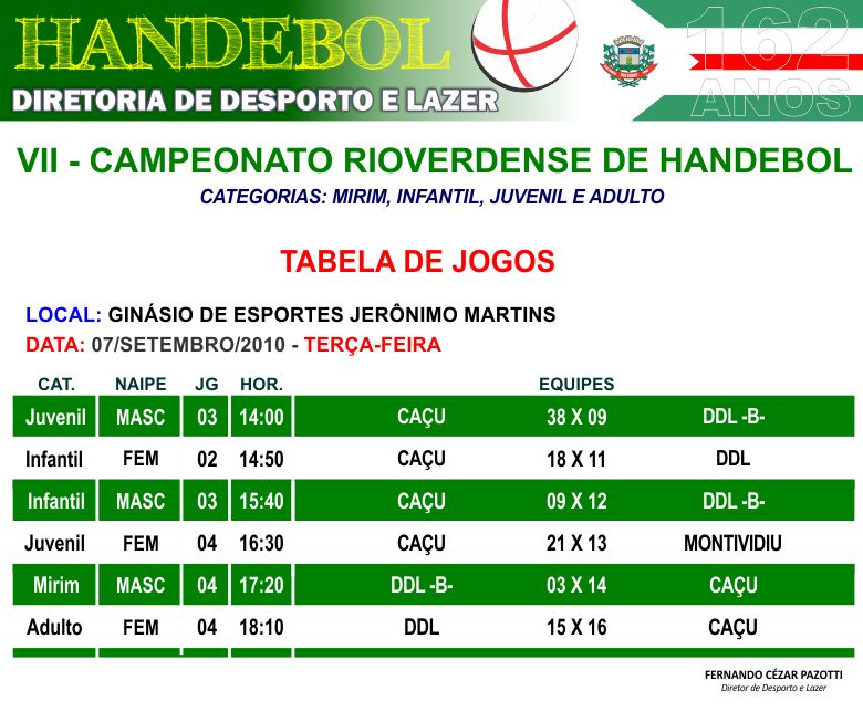 VII Campeonato Rio-verdense de Handebol – Resultados